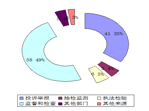 从案件来源看,投诉举报71件,抽检监测46件,执法检验82件,监管和专项检查561件,其他部门通报75件,其他14件。