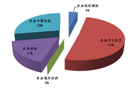 按照培训渠道分为:党校行政院校干部学院培训、系统培训机构培训、单位内部培训、高等学校培训、国家总局网络培训和社会其他培训机构培训等。