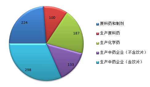 图3-3-1 2017年全省保健食品案件来源分布图 从主要违法主体看,以流通单位为主,流通单位162件,生产单位和其他主体16件。 从案值划分看5万元以下的案件175件,5万元以上的案件3件。 四、保健食品广告审批及查处情况2017年,全省各级食品药品监管机构受理审查保健食品广告91件,给予批准文号91个,其中视7件,声33件,文51件。 五、保健食品投诉举报情况受理保健食品投诉举报1361件,立案30件,结案30件。 第四部分药品监督管理一、省局行政审批情况截至2017年,全省共核发药品生产许可证434张,原料药和制剂224家,生产原料药企业100家,生产化学药企业187家,生产中药企业(不含饮片)133家,生产中药企业(含饮片)298家。